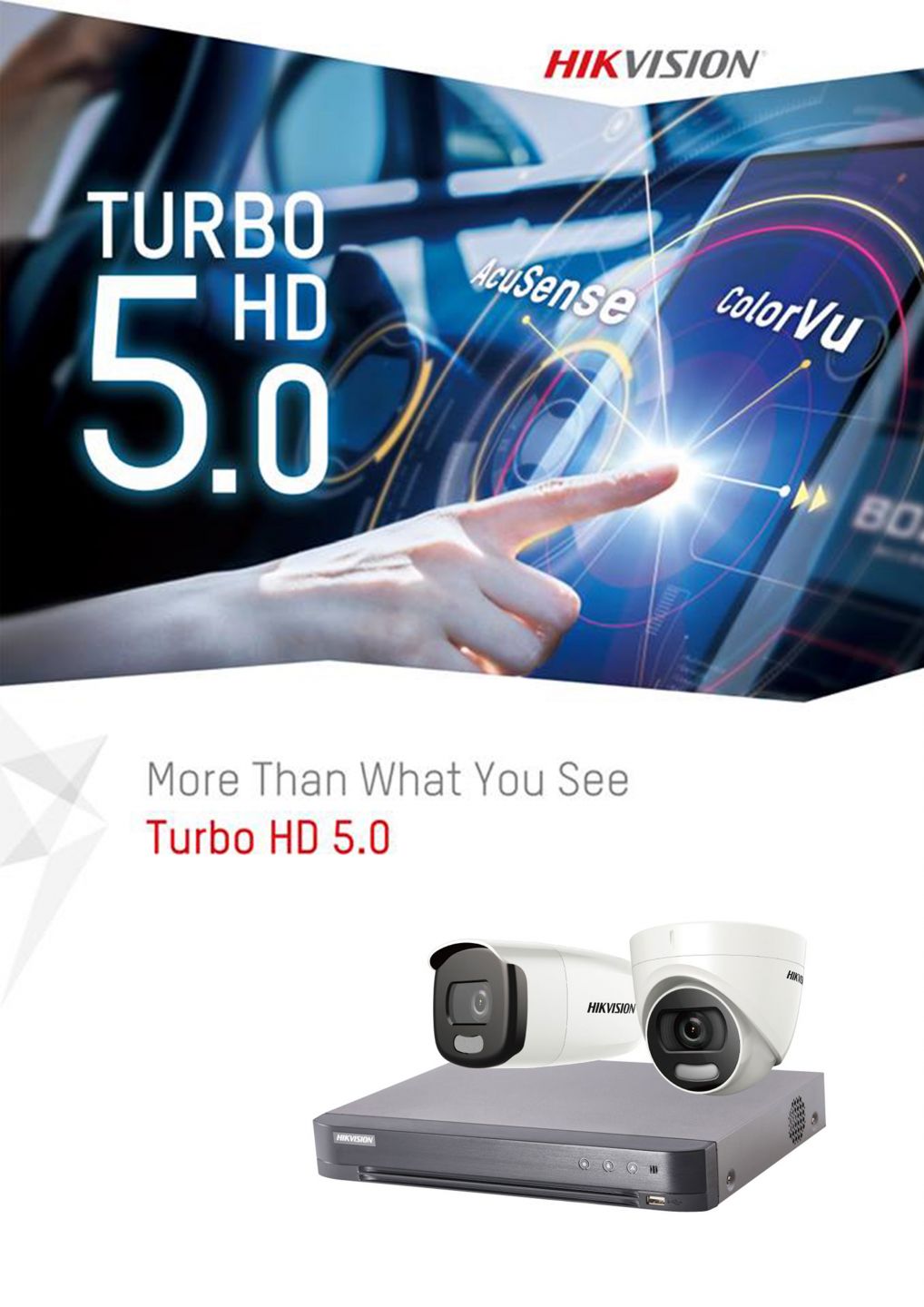 海康威視最新推出的Turbo HD 5.0將高清類比和CCTV系統的能力提升至新的高度,幫助各機構最大限度地提高安全性並降低監控成本T urbo HD 5.0 系列監控產品,包括 AcuSense Turbo HD DVR 和ColorVu Turbo HD 攝像機。